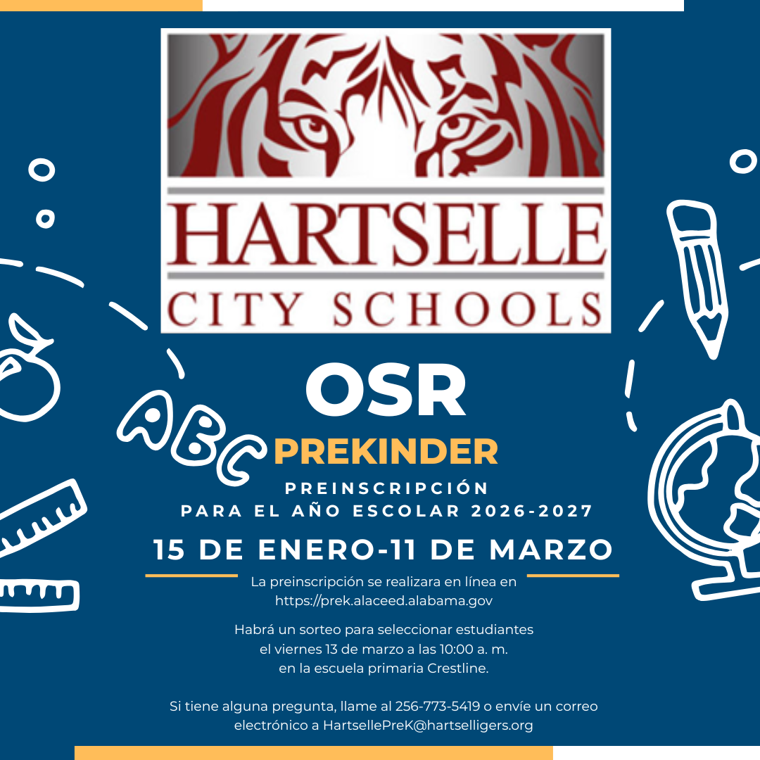 Pre-registration for the Alabama OSR Pre-K will be open from January 15-March 11, 2026. You may pre-register online at https://prek.alaceed.alabama.gov/.